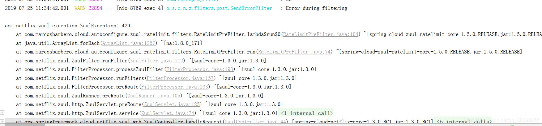 com.netflix.zuul.exception.ZuulException: 429 请求资源数达到上限