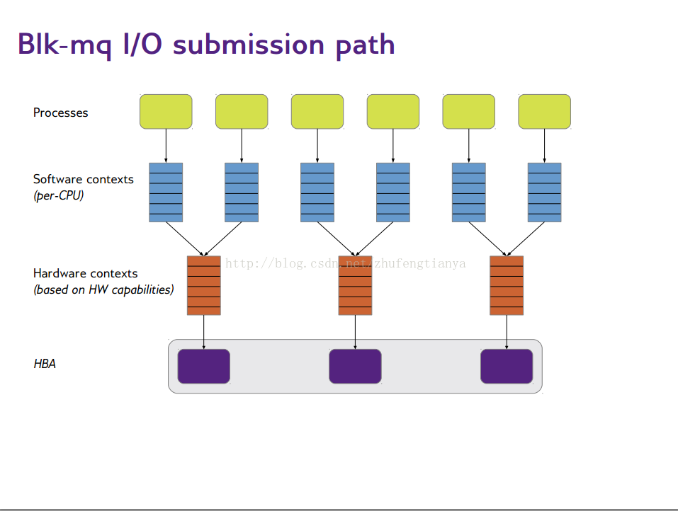 下图示意了Blk-mq的IO Submission机制。