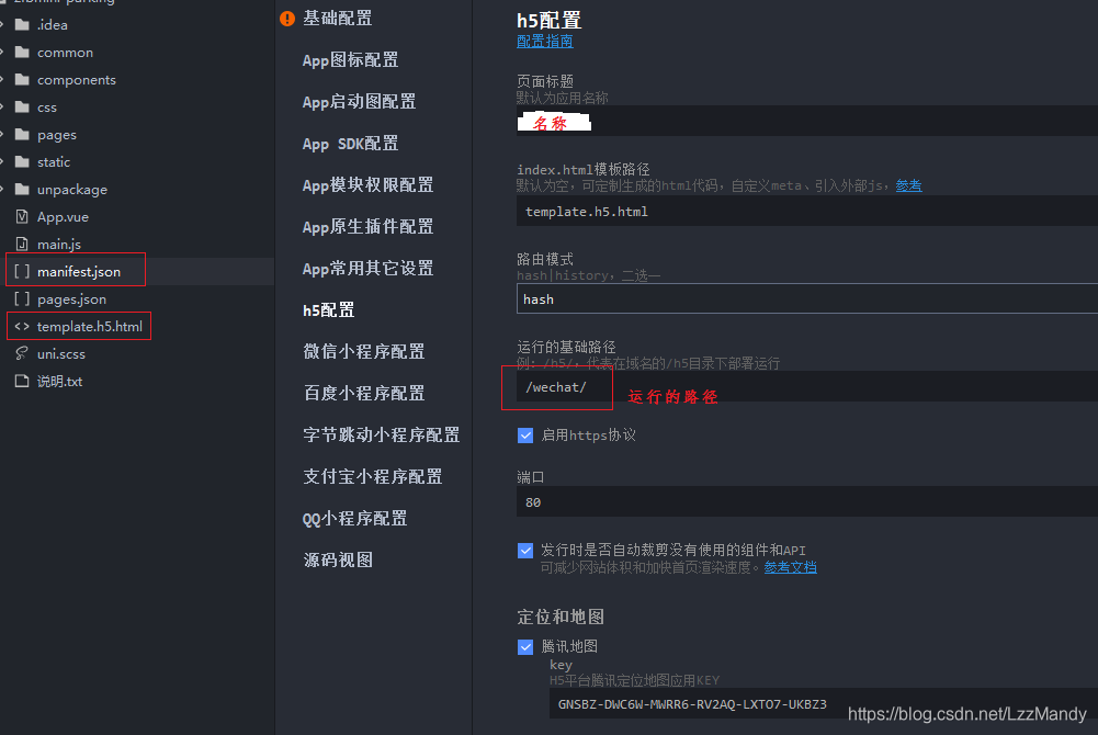 参见官网https://uniapp.dcloud.io/collocation/manifest?id=h5-template