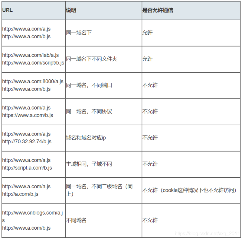 第二:在跨域问题上,域仅仅是通过“URL的首部”来识别而不会根据域名对应的IP地址是否相同来判断。“URL的首部”可以理解为“协议, 域名和端口必须匹配”。