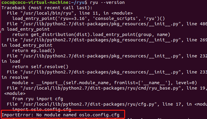 最近在安装RYU,网上有很多教程,但是中间也遇到了几个问题,这里记录一下,也方便大家参考。