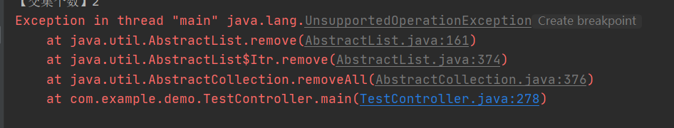 在使用retainAll方法时,不要直接使用Arrays.asList这种方式,可能会出现以下异常: