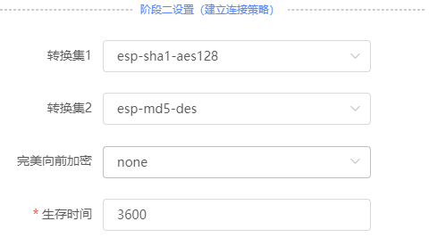 IKE策略:根据需要选择,需要至少有一条和对端相同。