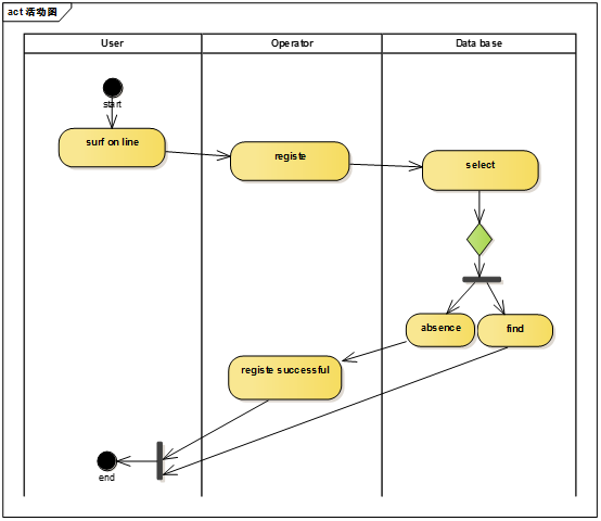 泳道:将活动用线分成一些纵向区域,这些纵向区域称为泳道。每个区域代表一个特定类,或者人,或者部门的责任区。泳道技术是活动图中引入的一种面向对象机制。可为提取类及分析各个对象之间的交互提供方便。