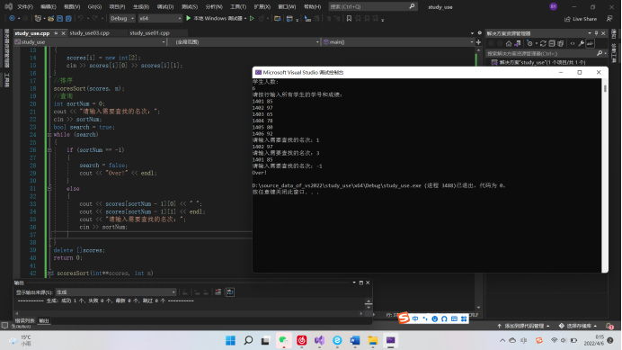 要求:1)人数n由用户输入;2)每行按照学号、成绩的顺序输入n行数据;3)按成绩降序排序,排序写成一个函数;4)设计一个循环过程,根据用户输入的名次序号,输出对应学生的学号和成绩,当用户输入-1时,程序结束。