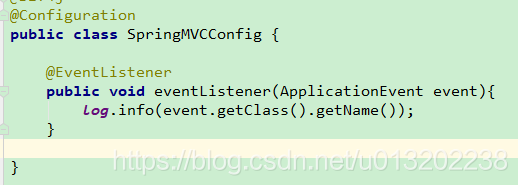 5 使用@EventListener 注解配置在bean中定义任意方法并使用该注解, 注解属性class中可以指定具体监控的事件类,通过方法参数指定事件类型,如果不指定则表示监控所有的事件