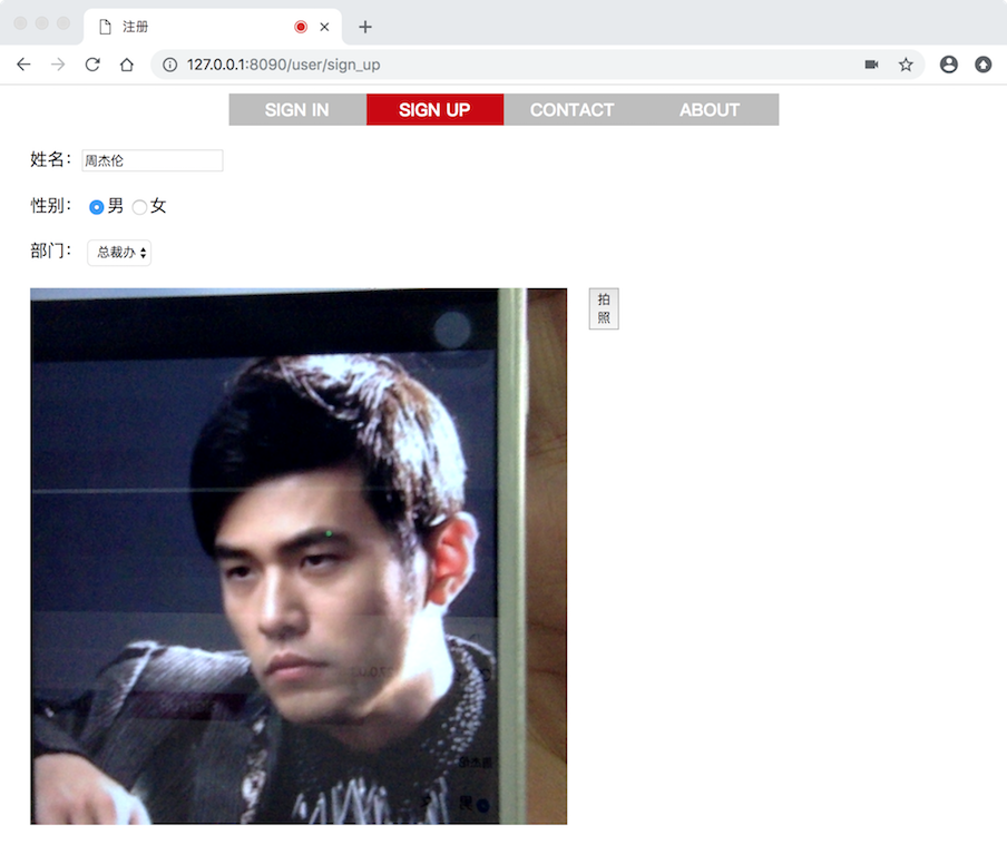 - 人脸识别页面:http://127.0.0.1:8090/user/sign_up