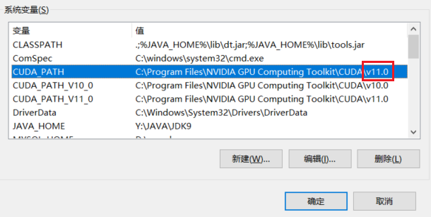 更改系统环境变量,CUDA_PATH的v10.0/v11.0即可