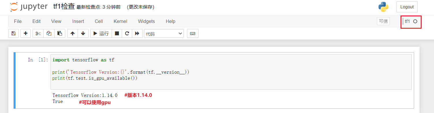 python -m ipykernel install --user --name tf1 --display-name "tf1" # 进行配置