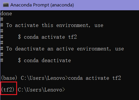 conda activate tf2 # 激活tf2环境