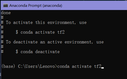 按y安装完会出现下图:(应该是tf1,这是创建tf2环境时截的图)