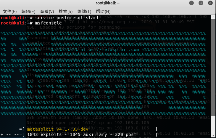 启动metasploit