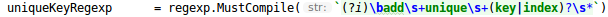 后面通过分析我们想了一种方案,首先通过如下一条正则解析命令是否包含新增唯一键。