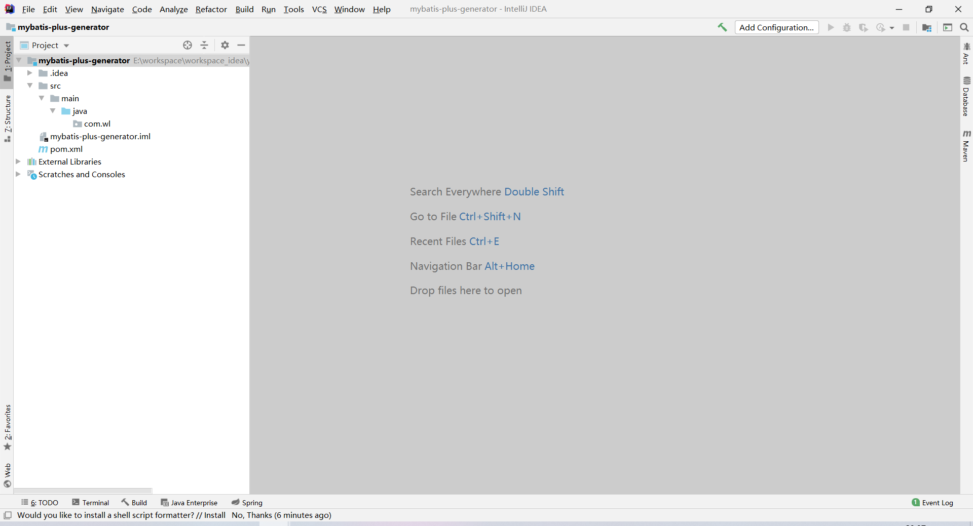 首先,创建一个maven项目,直接maven创建,或者选择Spring Initializr创建一个SpringBoot项目,再把多余的文件夹及文件删除。我选择的是方式二,删完预览: