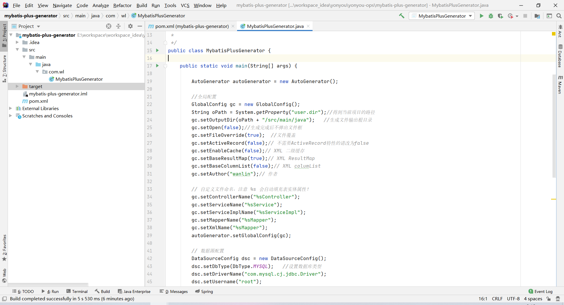 gc.setOutputDir(oPath + "/src/main/java"); //生成文件输出根目录