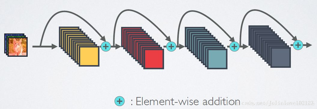 图1 ResNet网络的短路连接机制(其中+代表的是元素级相加操作)