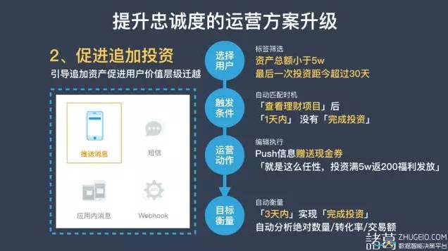 2、促进追加投资:引导追加资产促进用户价值层级迁越