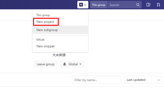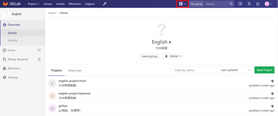 点进去我们自己的项目,并点击右上角附近的“+”号,然后选择This group下的 New project