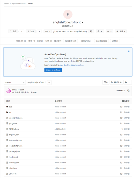 git clone git@192.168.22.123:English/englishPorject-front.git