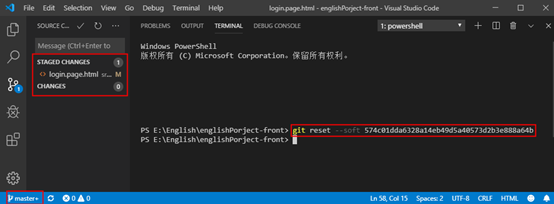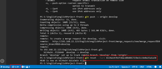 当前我们已经提交了此次代码,但是发现我们已经提交错误分支了,我们就需要进行回滚了