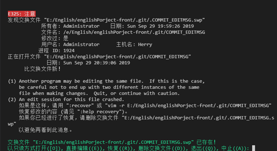 我们点击回车,这个时候又回到我们之前commit状态之前了。如果我们点击了R,就说明退回到了commit完毕状态,我们没有好修改的了,但是远程是有的。