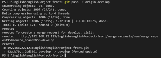 git push -f origin develop
