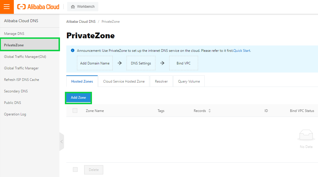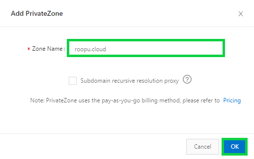 为内部名称解析创建阿里云私有 DNS 区域