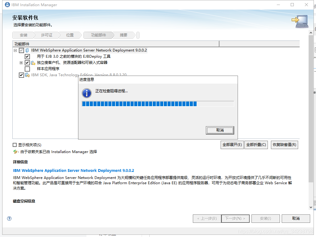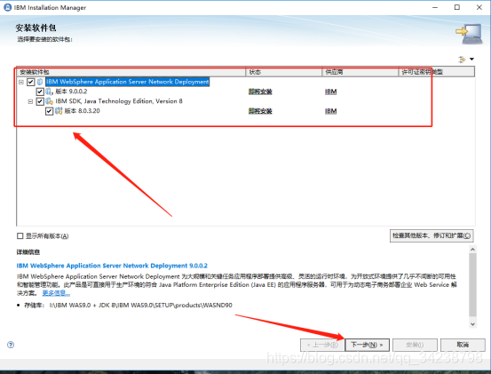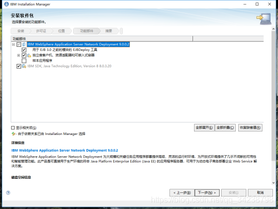 4-10:选择你要安装的 WAS的 功能部件 点击"下一步" 然后再点"安装"