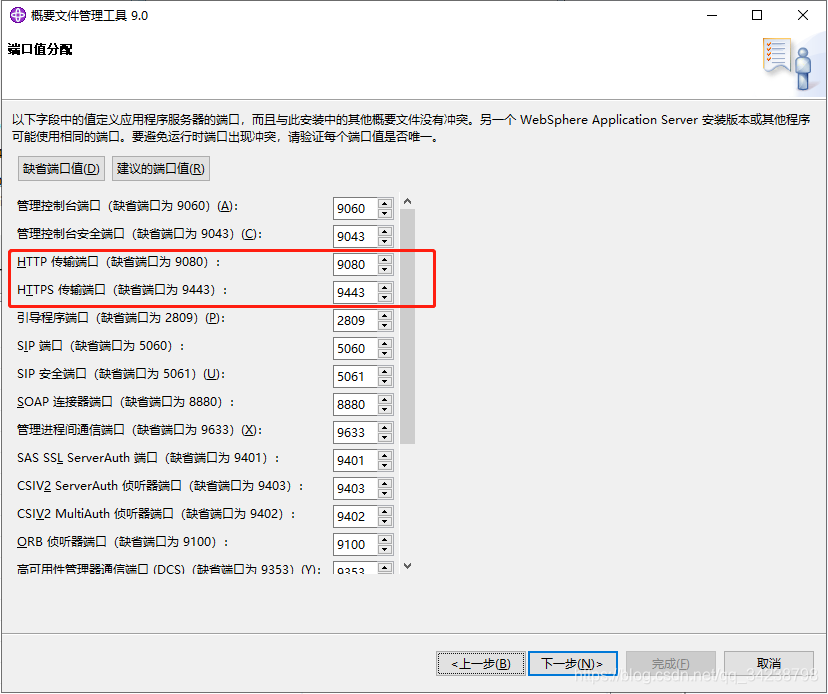 5-9:端口配置:( 标红的端口一会儿要用到)注意 HTTP 端口 就是部署你的应用程序成功之后的默认访问端口后续会说。