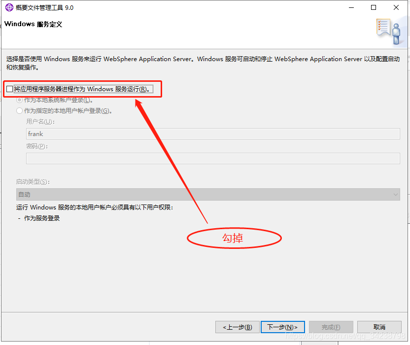 5-10:服务定义:应用服务器不作为本地进程在Windows上运行。 (勾去掉)点下一步