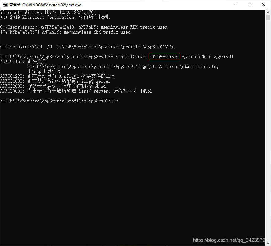 6-3:键入启动命令:startServer ifrs9-server -profileName AppSrv01