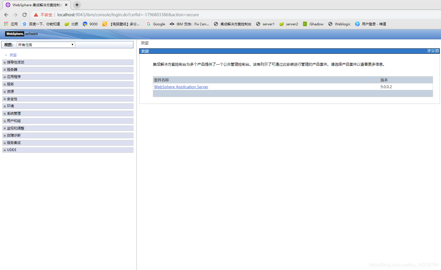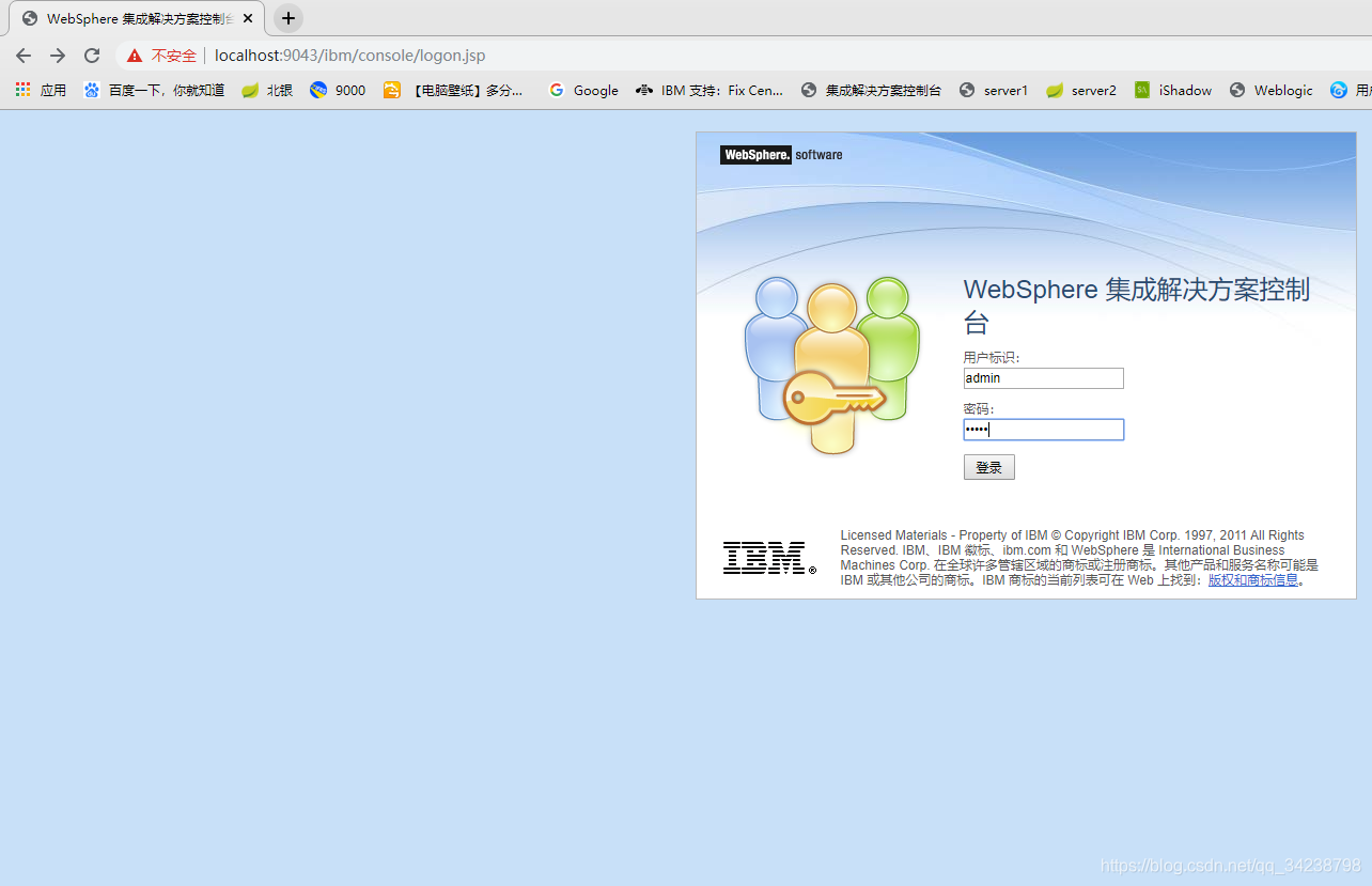 6-4:访问Websphere控制台: https://localhost:9043/ibm/console/logon.jsp ( 输入刚才设置的用户名以及密码登录 )