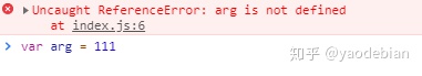 结果是当我执行了那条语句之后,我再刷新页面后,控制台中仍然是报错的,和上面的区别是没有我声明arg的那条语句。