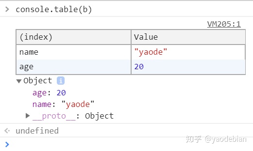 其实除了log函数,chrome还给console添加了table函数,如下: