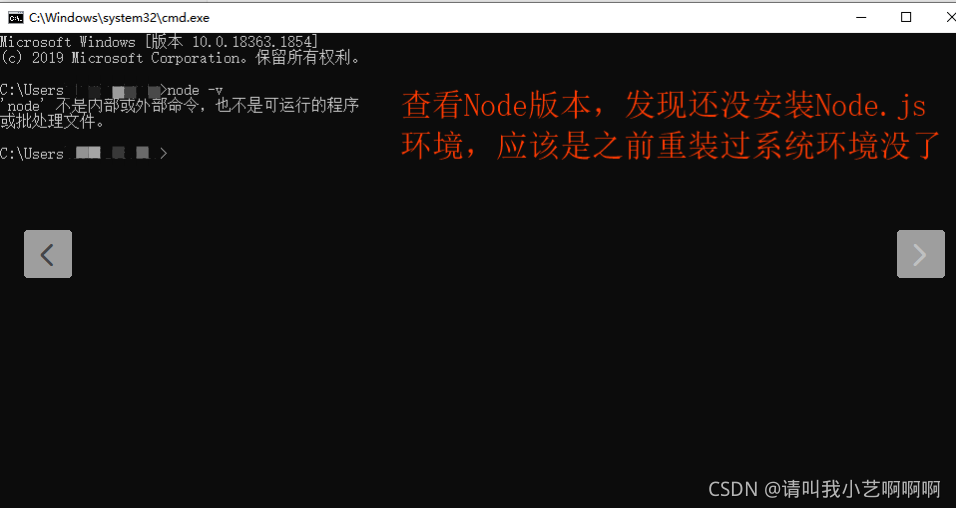 如出现上图情况,说明Node应该是还没安装。此时打开命令行窗口检查下配置