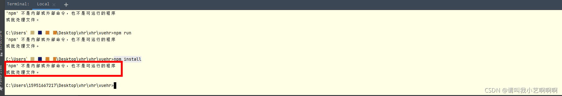 查看node 版本,如果没有版本显示或提示 “node 不是内部或外部命令,也不是可运行的程序或批处理文件。”,说明node还没安装,需要重新安装。