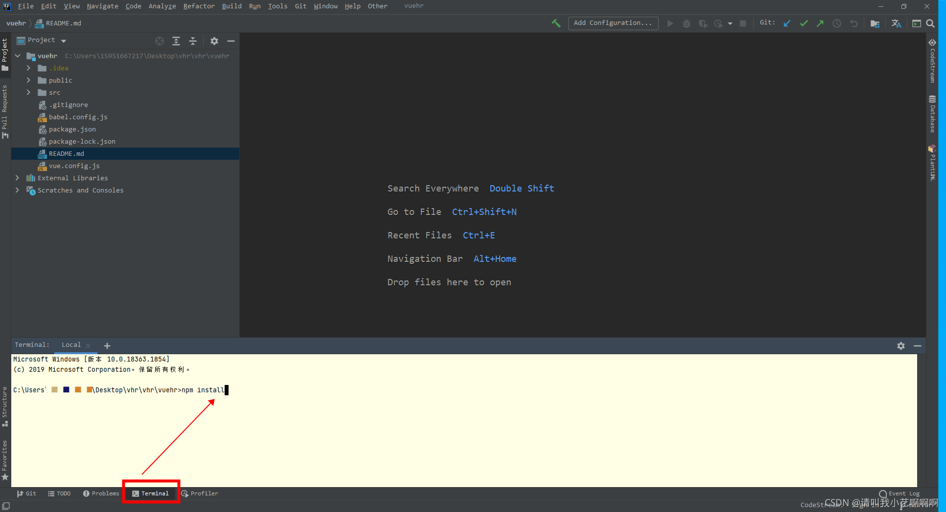 打开Terminal 输入命令【或者通过命令行窗口,在项目文件路径下输入命令】