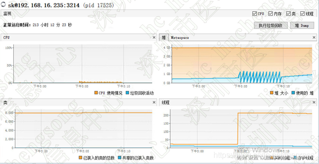 进行相关查看后,得出的结论是:内存使用完毕,FULL GC 频率很高,同时GC后没有释放空间,导致程序一直FULL GC,所以CPU也一直居高不下;
