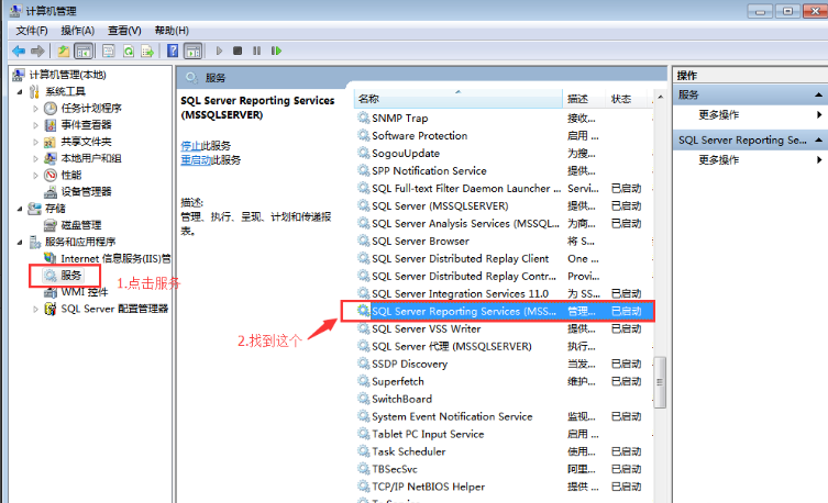 计算机管理中找到 SQL Server Reporting Services 将它停止
