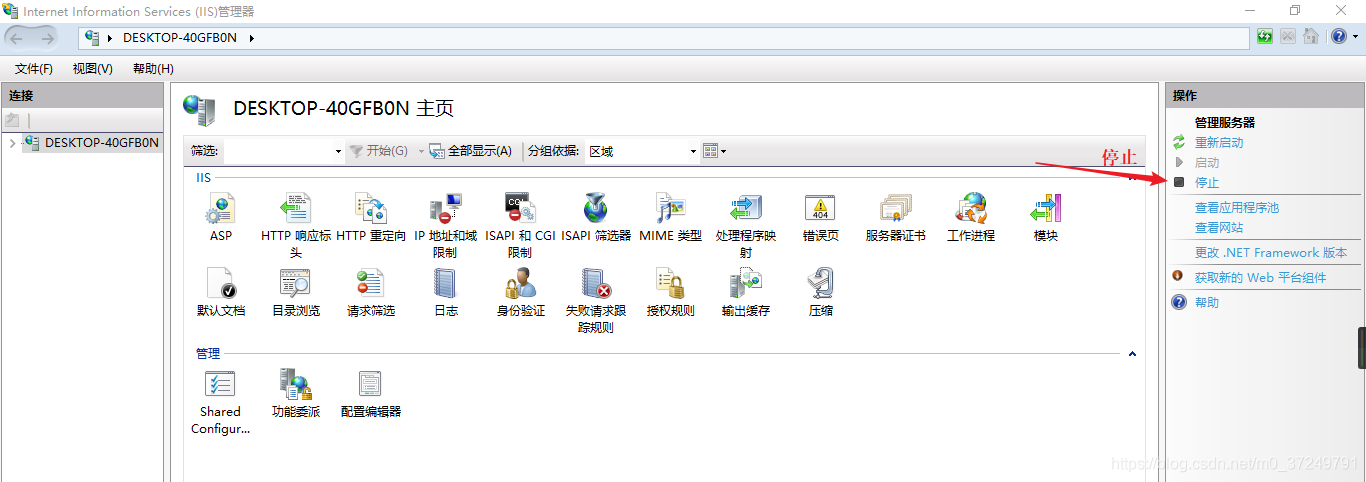 找到 Internet 信息服务(IIS管理) 菜单 如果在运行就停止它