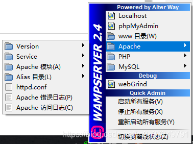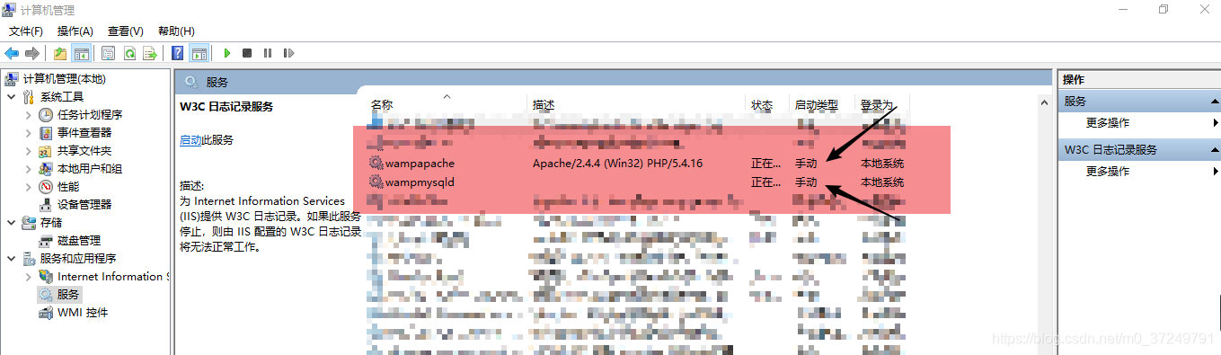 同样是计算机管理 服务和应用程序 ->服务 中找到 wampapache 设置为手动 or 自动