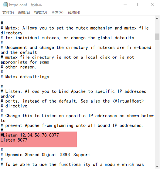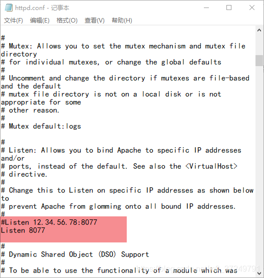 点击 httpd.conf文件 ctrl + f 查找 #Listen 开头的这段代码