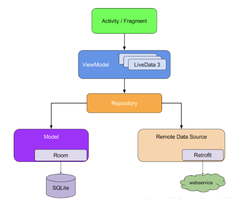上面架构大家应是很熟悉的,基本原则和平时使用的MVC、MVP等一样,都是使界面、数据、和处理的逻辑进行解耦,打造稳定的、易测试、易扩展的项目架构,只是在这个过程中使用了全新的组件,如:ViewModel、LiveData等,使整个项目架构更加简单和灵活,关于使用的新组件不了解的可以点击文章开头的链接,学习相关组件的使用,本文默认读者已经了解组件的简单使用。