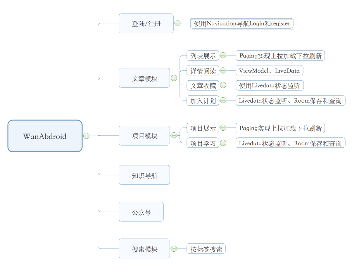 在接触Android Jetpack组件时, 就深深被其巧妙的设计和强大的功能所吸引,暗自告诉自己一定要学会这些组件,而网上并不能找到系统的学习资料,于是利用每天的时间访问Google Developers,把Jetpack的每个组件从使用到源码进行了系统的学习和总结,于是就有了带你领略Android Jetpack组件的魅力系列文章,希望在总结自己学习的同时,也能帮助需要这些资料的同学,在写完这些文章后,想在项目中使用这些强大组件的想法就更加想强烈了, 但又担心直接在公司项目中使用会又踩坑的危险,而且公司的项目又一时难以全部替换,好在WanAndroid提供了完整的应用接口,才有了这个Jetpack版的WanAndroid客户端,项目功能比较简单,作为Jetpack组件的实战项目,旨在抛砖引玉和大家一起真正的使用Jetpack组件。