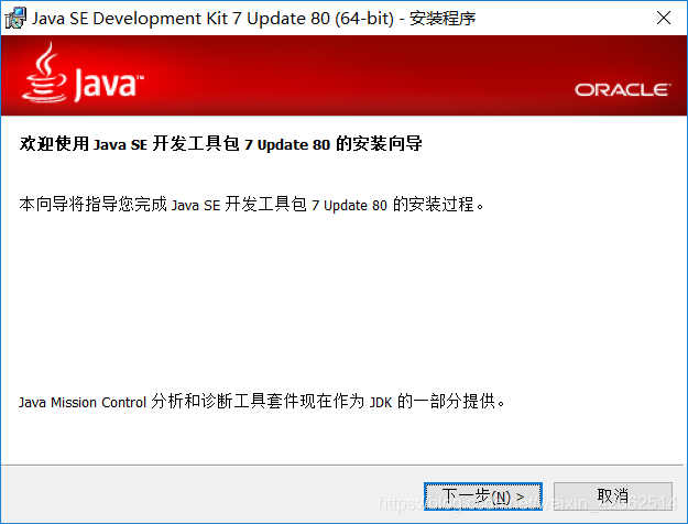2、双击运行jdk-7u80-windows-x64.exe文件