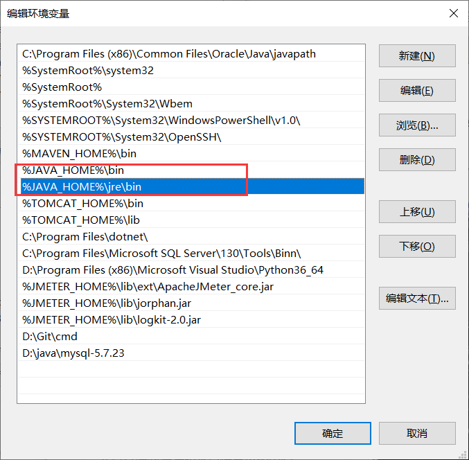 10、双击“path”,编辑系统变量,在后面加上jdk安装路径