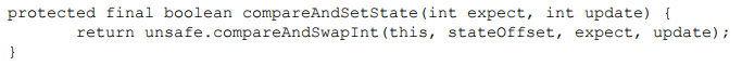 3)AbstractQueuedSynchronizer:compareAndSetState(int expect,int update)。