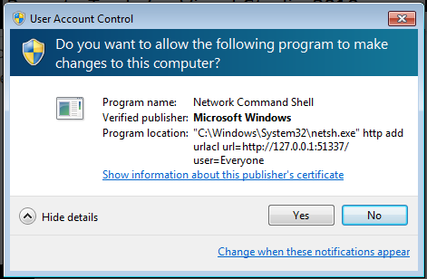 如果出现"User Account Control"弹出窗口,请单击“yes”