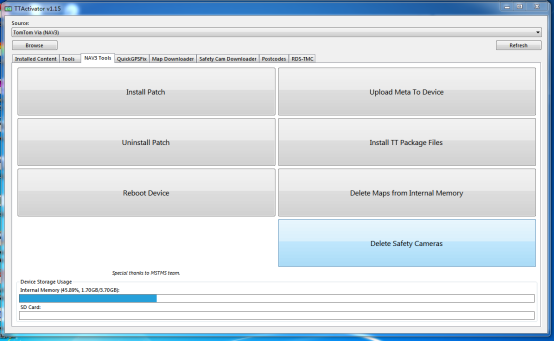 转到“ Safety Cam Downloader”菜单。单击“轻松/自动安装”选项。在安装所有可激活的速度摄像机之后,请耐心等待。完成后,从“ NAV3 Tools”菜单重新启动设备以进行激活。