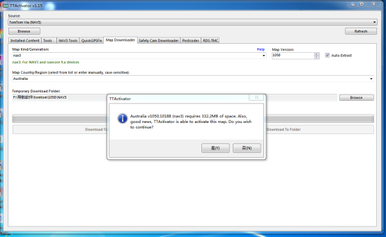 单击“Download to Device”,这将下载地图并将其直接安装到您的NAV3上。